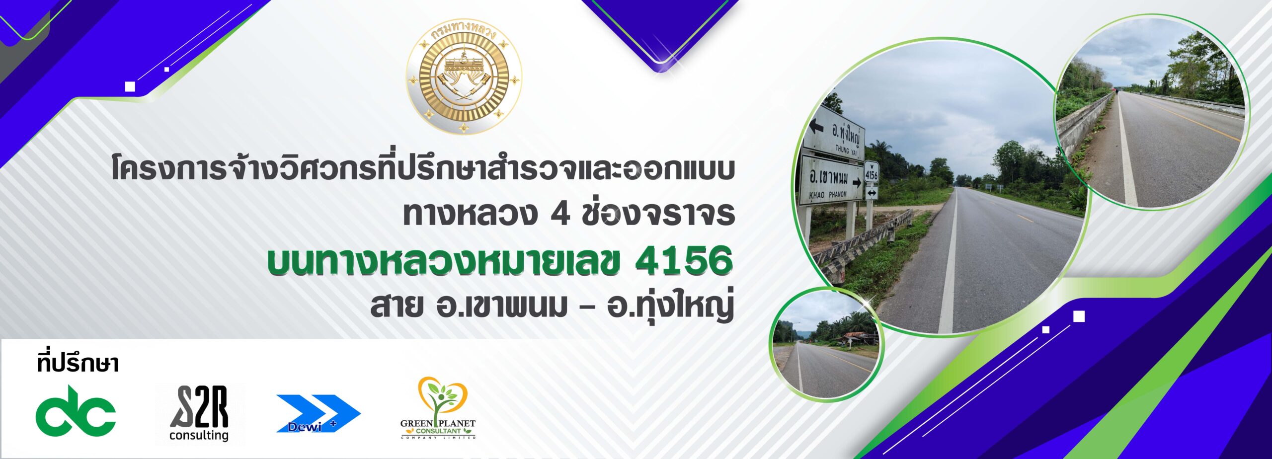 กรมทางหลวงจึงได้ว่าจ้าง บริษัท ดีเคด คอนซัลแตนท์ จำกัด บริษัท เอสทูอาร์ คอนซัลติ้ง จำกัดบริษัท ดีไว พลัส จำกัด และบริษัท กรีน พลาเน็ท คอนซัลแตนท์ จำกัด ดำเนินการศึกษาและประเมินผลกระทบสิ่งแวดล้อม โครงการจ้างวิศวกรที่ปรึกษาสำรวจและออกแบบทางหลวง 4 ช่องจราจรบนทางหลวงหมายเลข 4156 สาย อ.เขาพนม – อ.ทุ่งใหญ่ ระยะทางประมาณ 40.475 กิโลเมตร มีระยะเวลาดำเนินการรวม 450 วัน