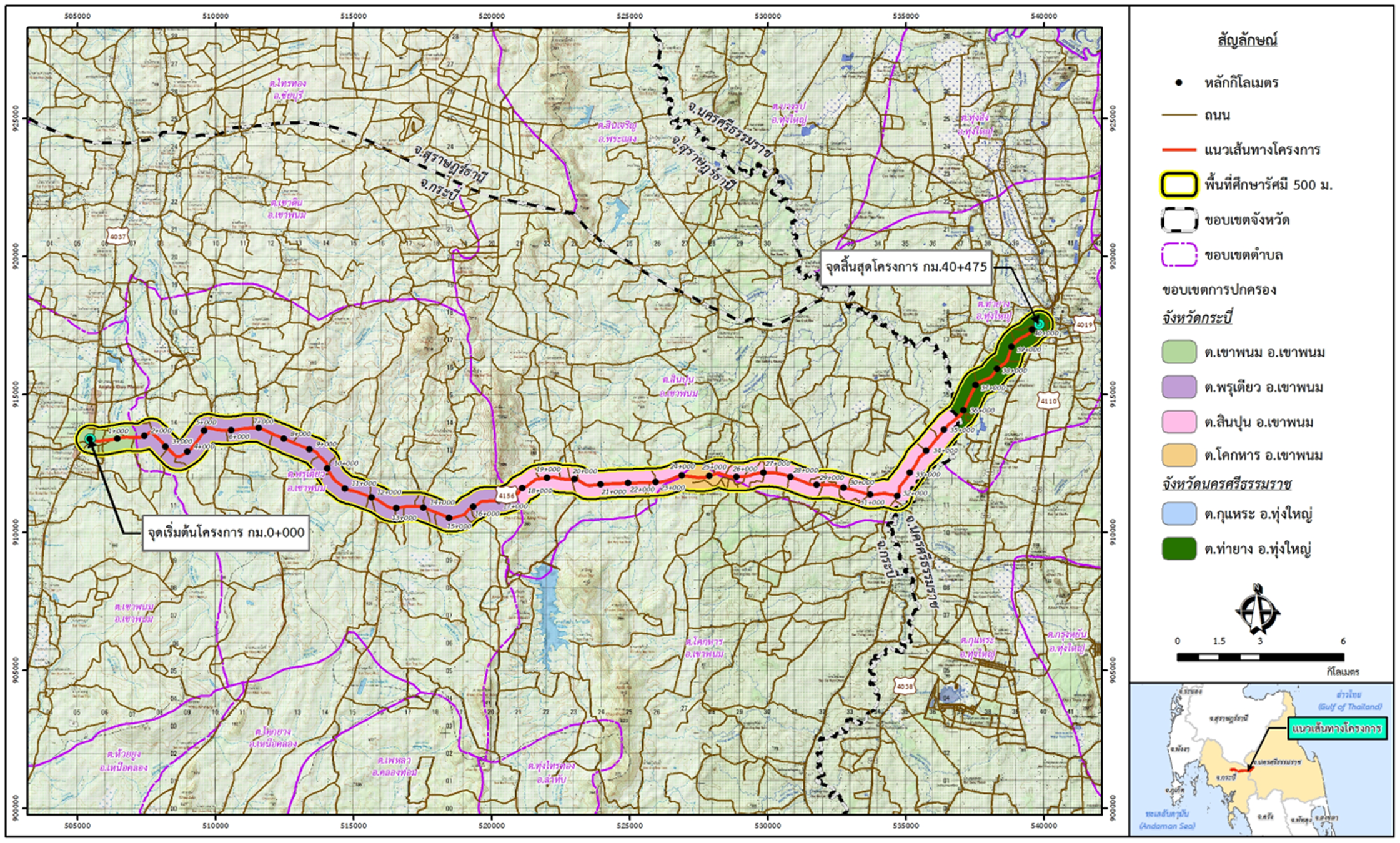 - เพื่อสำรวจและออกแบบทางหลวง 4 ช่องจราจร บนทางหลวงหมายเลข 4156 สาย อ.เขาพนม – อ.ทุ่งใหญ่