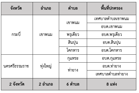 พื้นที่ศึกษาของโครงการจ้างวิศวกรที่ปรึกษาสำรวจและออกแบบทางหลวง 4 ช่องจราจร บนทางหลวงหมายเลข 4156 สาย อ.เขาพนม – อ.ทุ่งใหญ่ ดำเนินการศึกษาครอบคลุมในระยะ 500 เมตร จากกึ่งกลางแนวเส้นทางโครงการ และระยะ 1 กิโลเมตร จากแนวเส้นทางโครงการ (กรณีโบราณสถานฯ) โดยการดำเนินงานด้านการมีส่วนร่วมของประชาชนครอบคลุมพื้นที่เขตปกครอง 8 พื้นที่การปกครอง ในเขตพื้นที่ 6 ตำบล 2 อำเภอ 2 จังหวัด ได้แก่ ตำบลเขาพนม ตำบลพรุเตียว ตำบลสินปุน ตำบลโคกหาร อำเภอเขาพนม จังหวัดกระบี่ ตำบลกุแหระ ตำบลท่ายาง อำเภอทุ่งใหญ่ จังหวัดนครศรีธรรมราช