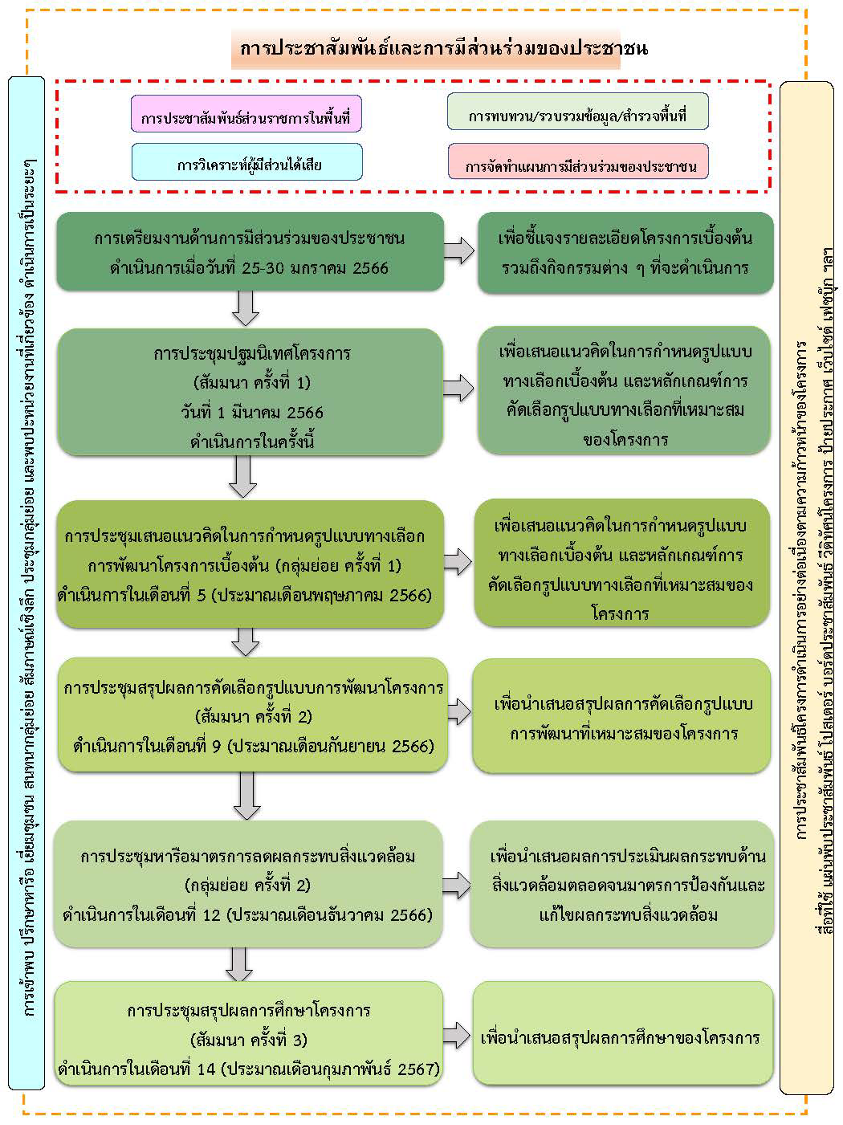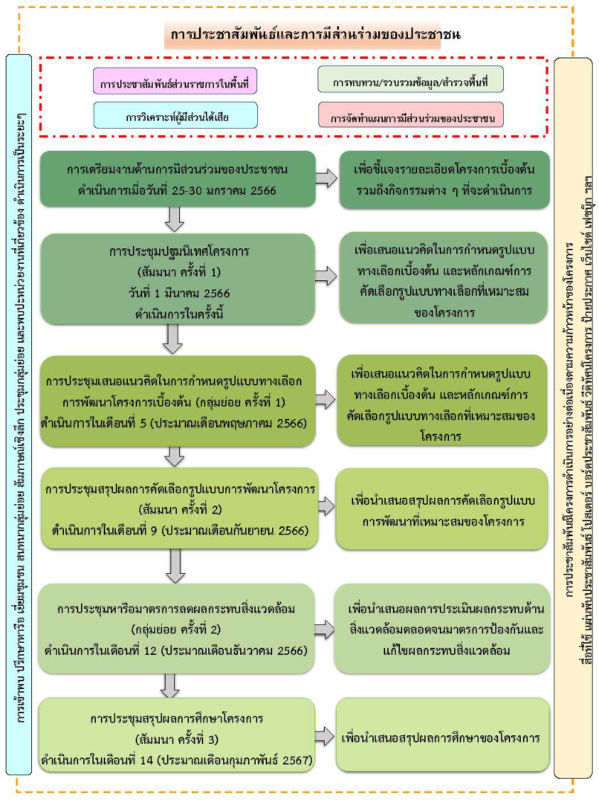- การประชาสัมพันธ์โครงการ ให้ความรู้ ความเข้าใจ ข้อมูลที่ถูกต้อง ชัดเจน และโปร่งใส ตลอดระยะเวลาการศึกษา