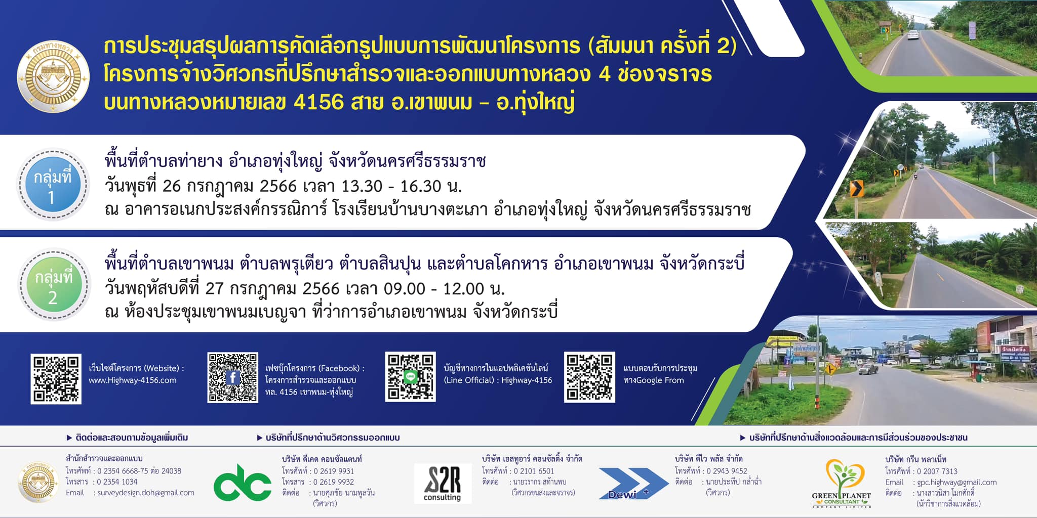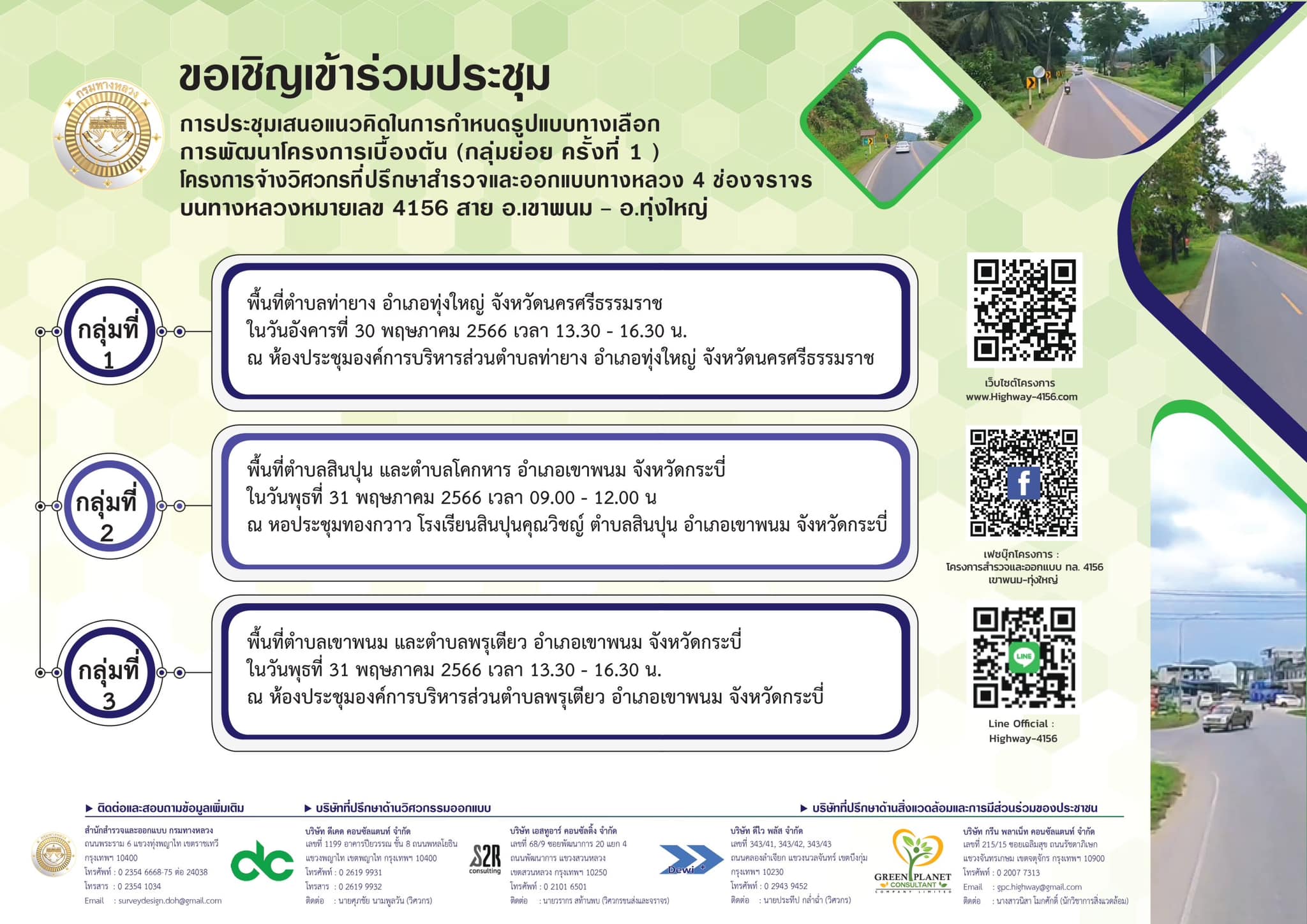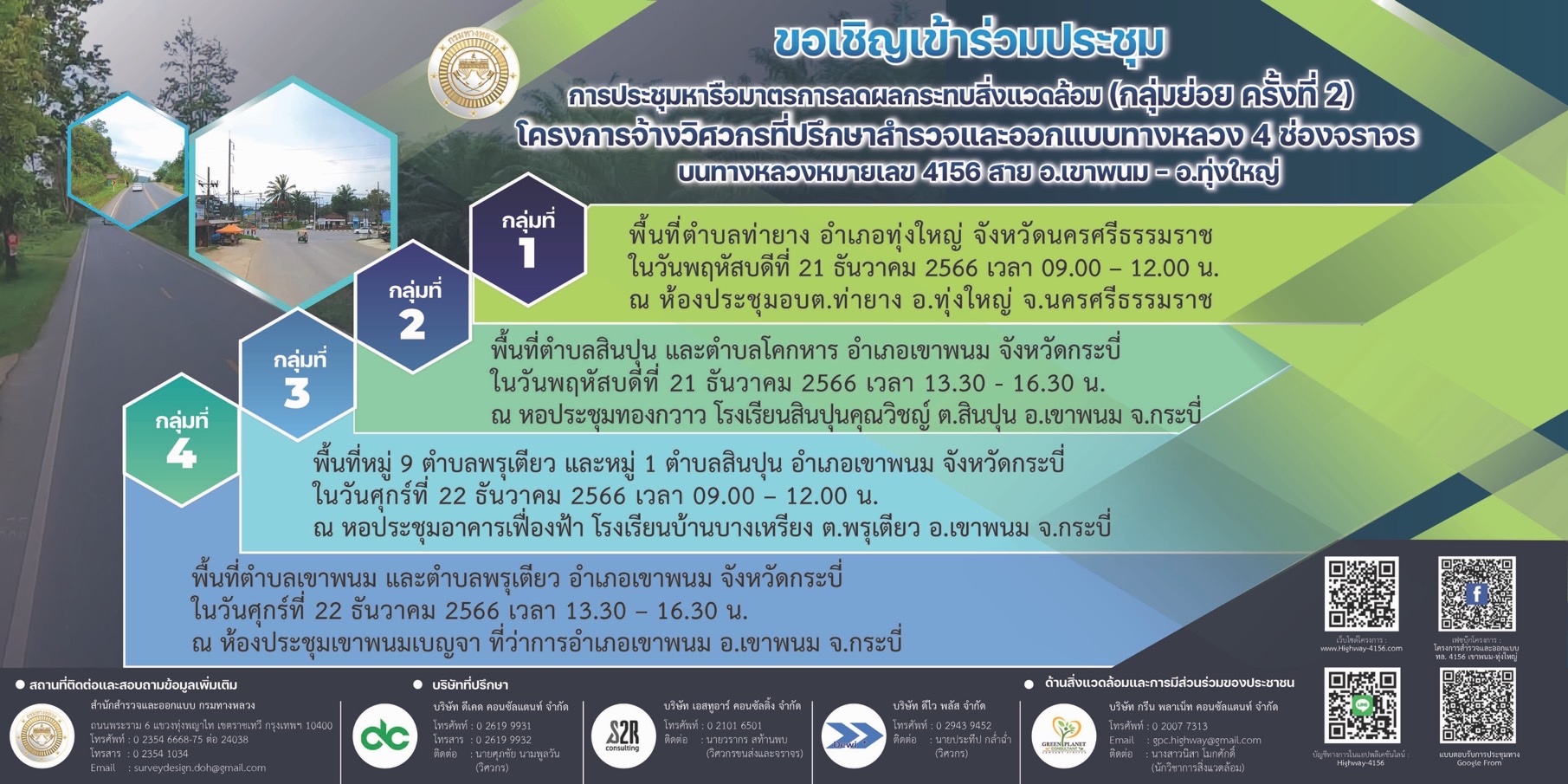 โครงการจ้างวิศวกรที่ปรึกษาสำรวจและออกแบบทางหลวง 4 ช่องจราจร บนทางหลวงหมายเลข 4156 สาย อ.เขาพนม - อ.ทุ่งใหญ่