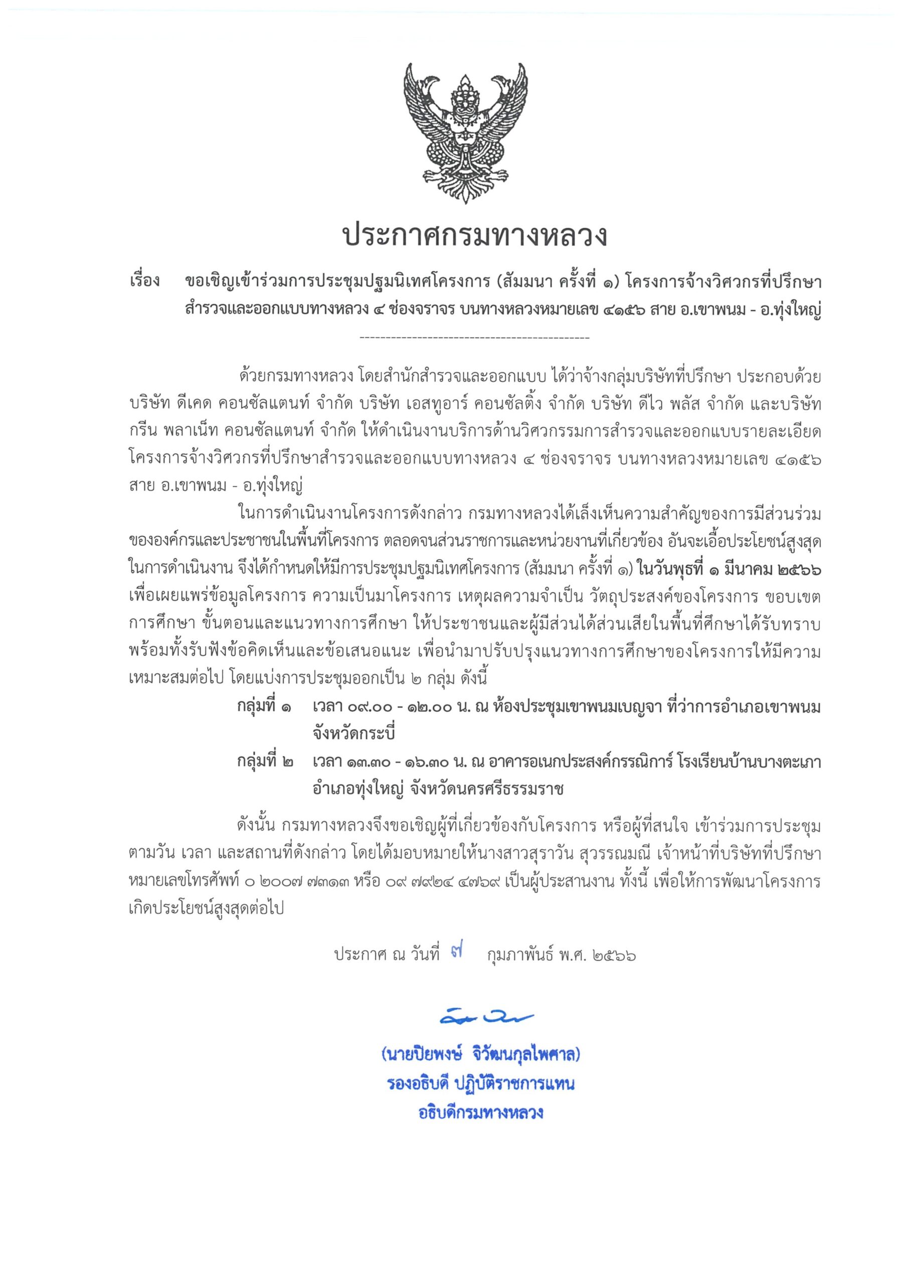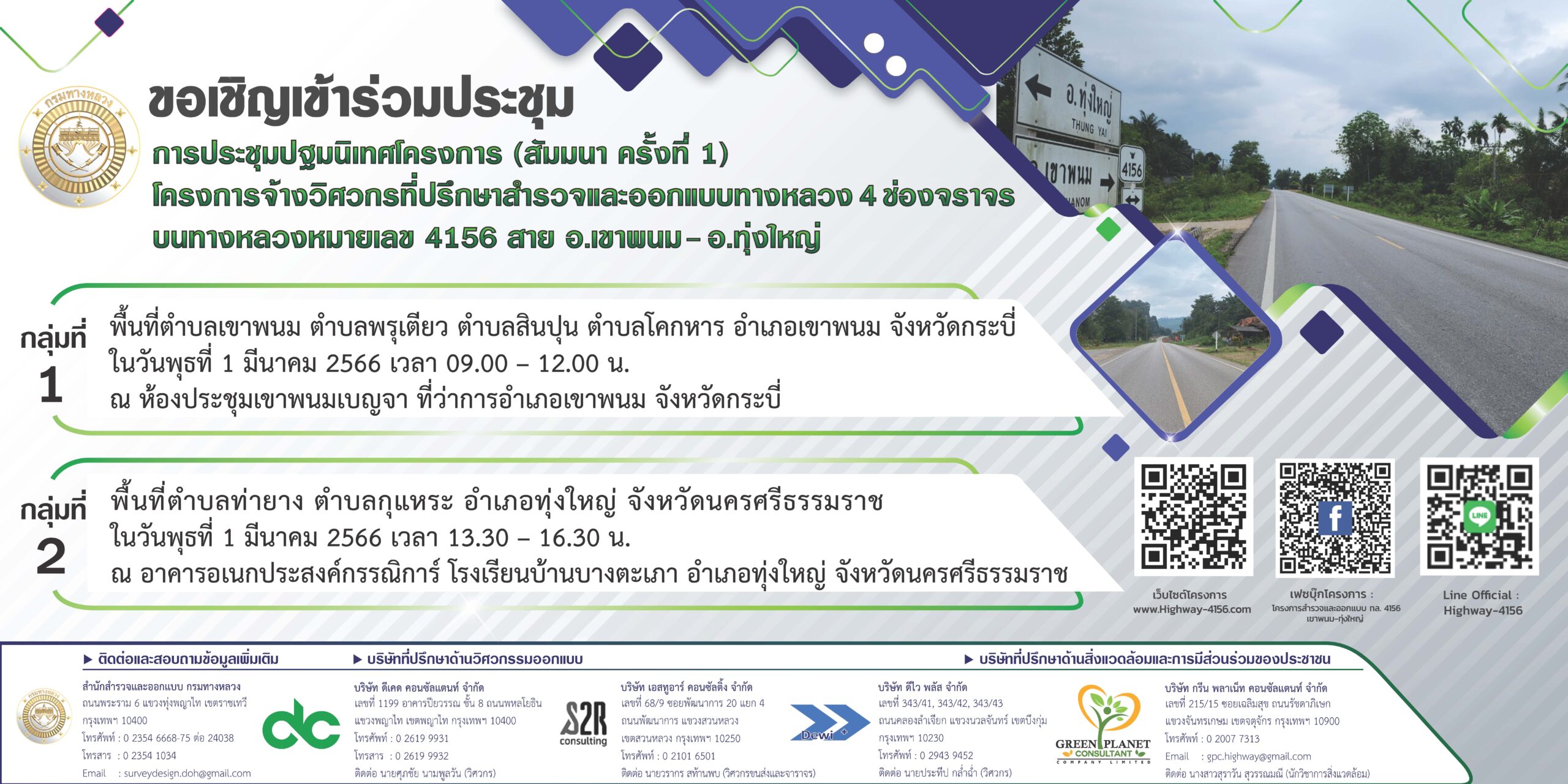 โครงการจ้างวิศวกรที่ปรึกษาสำรวจและออกแบบทางหลวง 4 ช่องจราจร บนทางหลวงหมายเลข 4156 สาย อ.เขาพนม – อ.ทุ่งใหญ่